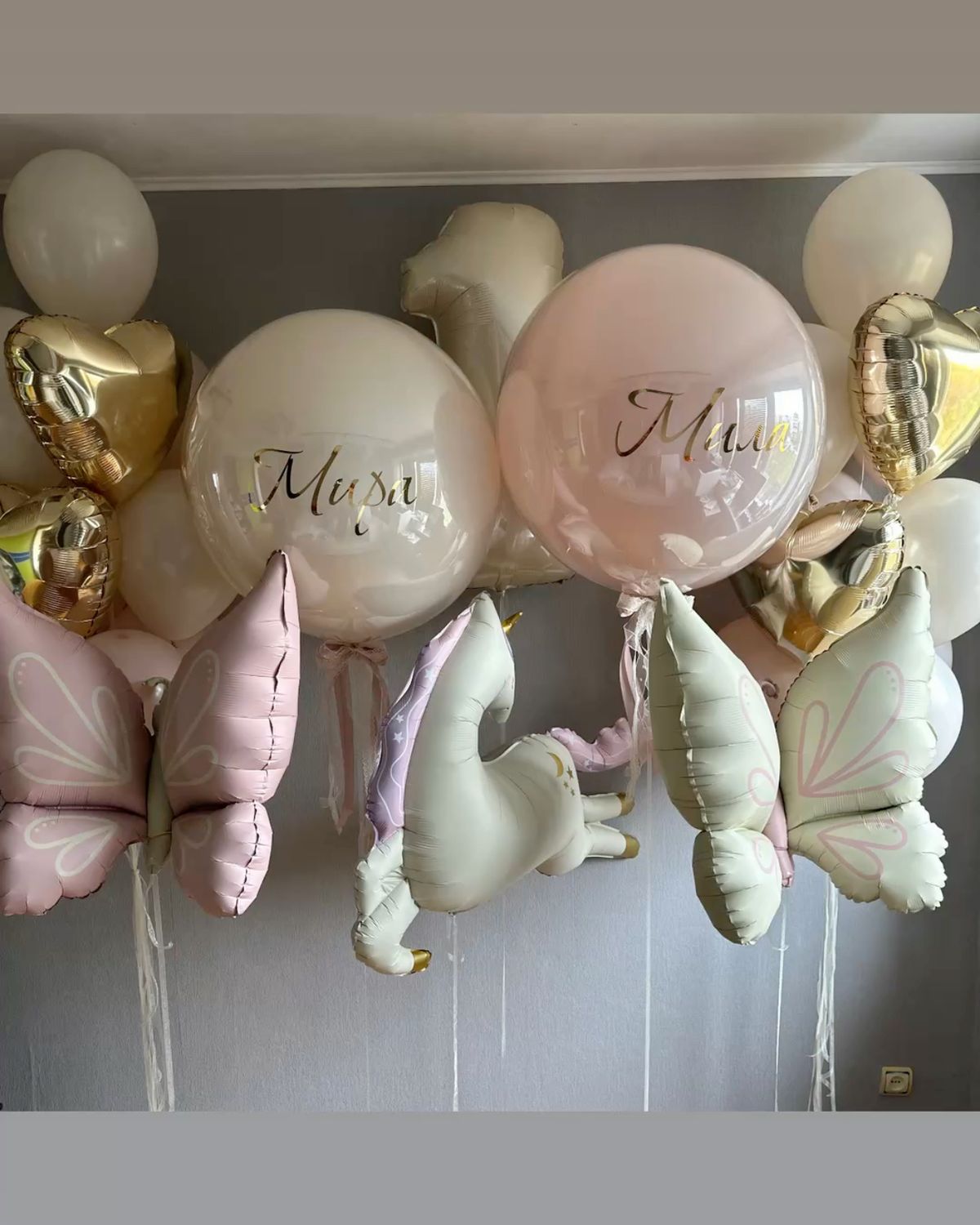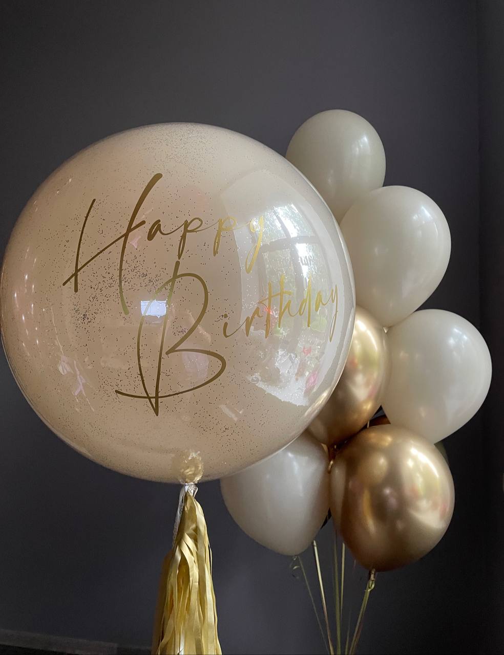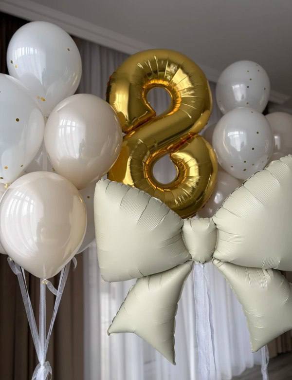 Фигура облако 1 шт Шары: -сердце 80 см с индивидуальной надписью с двух сторон белое 1 шт -"стеклянный" шар" с золотым конфетти и индивидуальной надписью 60 см 1 шт -"стеклянный" шар кремовый 3 шт -"стеклянный" шар белый 2 шт Количество, цвета и варианты шаров в составе сета вы можете менять на ваш вкус. Готовые сеты представлены для примера. Фольгированные шары летают от 3х дней и более. Латексные шары обработаны hi-float (полёт от 2х дней и более). Цветопередача может отличаться на несколько тонов в зависимости от вашего монитора.