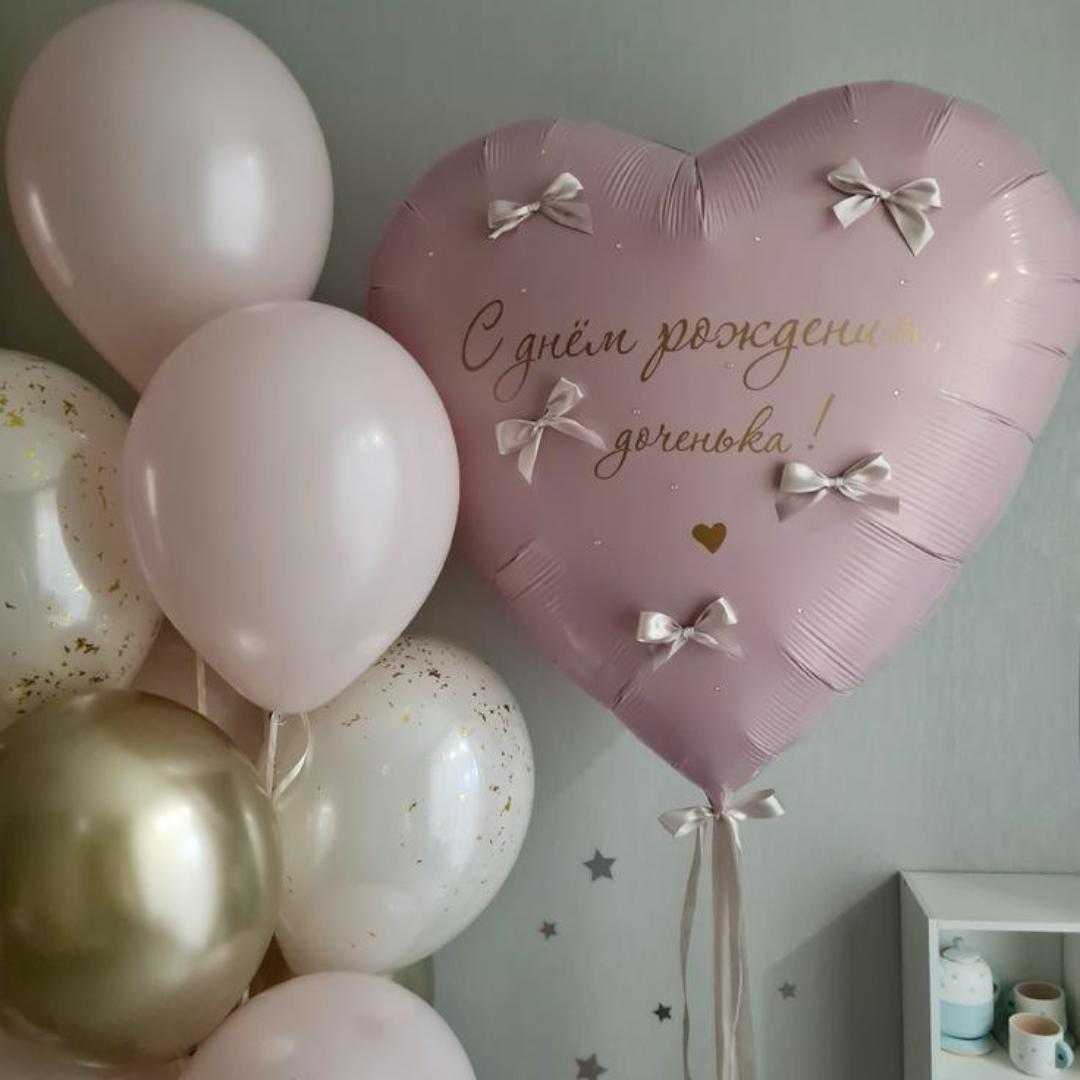 Шары: -сердце с инд надписью 1 шт -малиновый пастель 1 шт -кремовый пастель 2 шт -с конфетти 2 шт Количество, цвета и варианты шаров в составе сета вы можете менять на ваш вкус. Готовые сеты представлены для примера. Фольгированные шары летают от 3х дней и более. Латексные шары обработаны hi-float (полёт от 2х дней и более). Цветопередача может отличаться на несколько тонов в зависимости от вашего монитора.