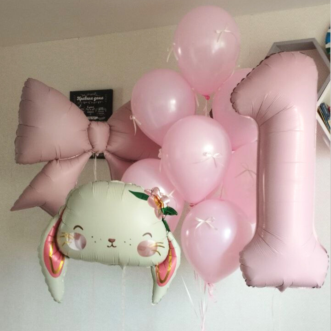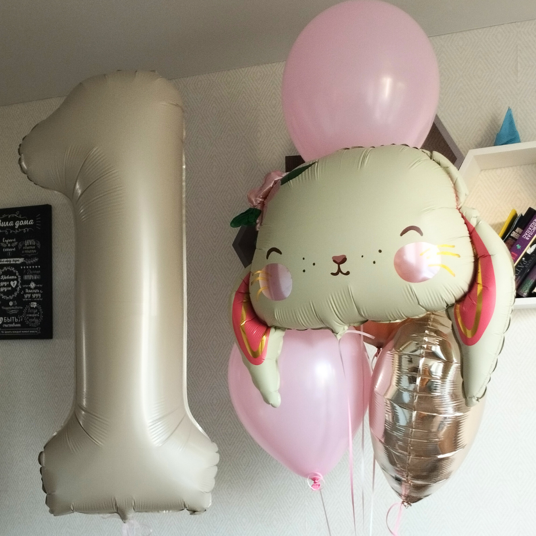 Цифра кремовый - 1 шт Фигура милый кролик - 1 шт Шары: -розовый 2 шт -золото хром 1 шт -сердце шампань 1 шт Количество, цвета и варианты шаров в составе сета вы можете менять на ваш вкус. Готовые сеты представлены для примера. Фольгированные шары летают от 3х дней и более. Латексные шары обработаны hi-float (полёт от 2х дней и более). Цветопередача может отличаться на несколько тонов в зависимости от вашего монитора.