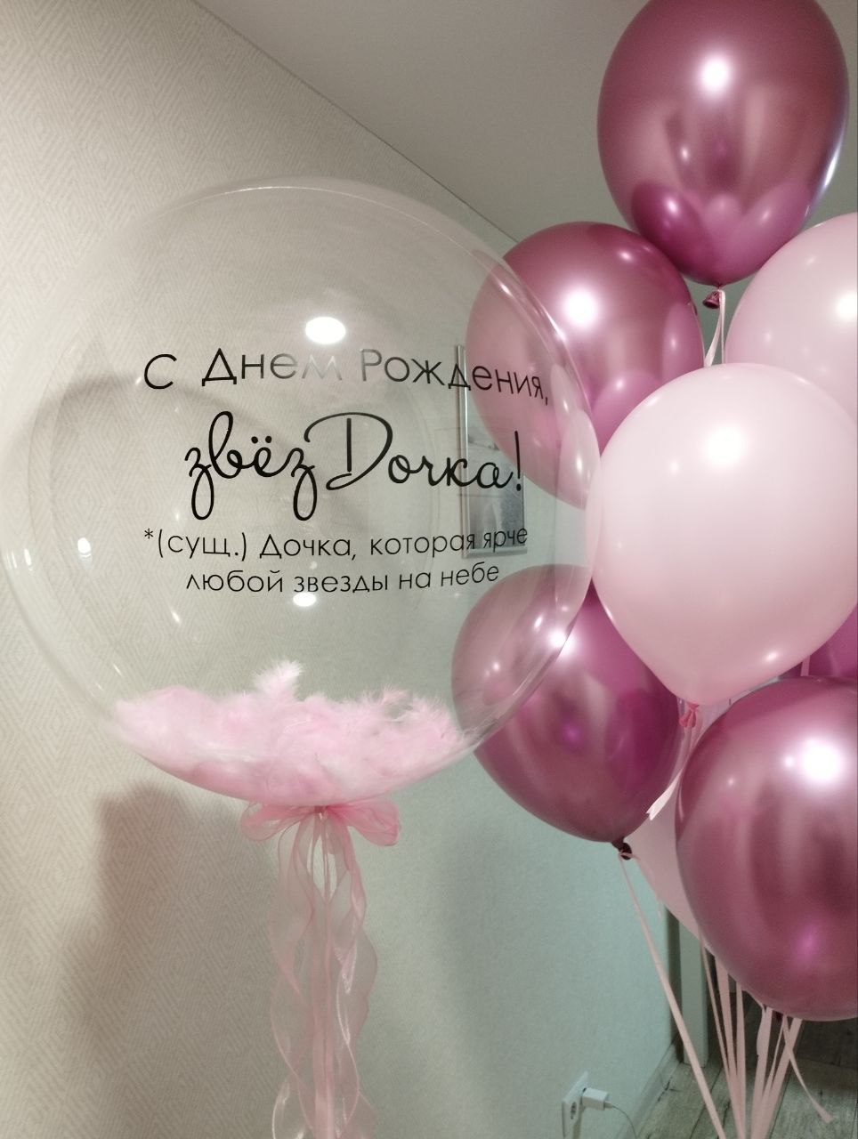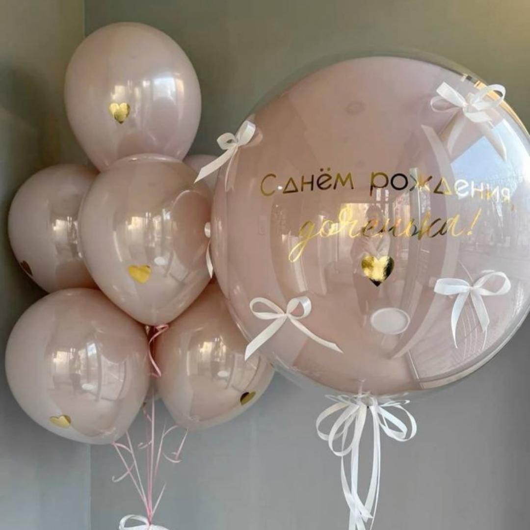 Баблс 50 см с пенопластовыми шариками и индивидулаьной надписью Шары: -розовый пастель 2 шт -белый пастель 2 шт -серебро хром 2 шт -с конфетти серебро 2 шт -сердце розовое 2 шт Количество, цвета и варианты шаров в составе сета вы можете менять на ваш вкус. Готовые сеты представлены для примера. Фольгированные шары летают от 3х дней и более. Латексные шары обработаны hi-float (полёт от 2х дней и более). Цветопередача может отличаться на несколько тонов в зависимости от вашего монитора.