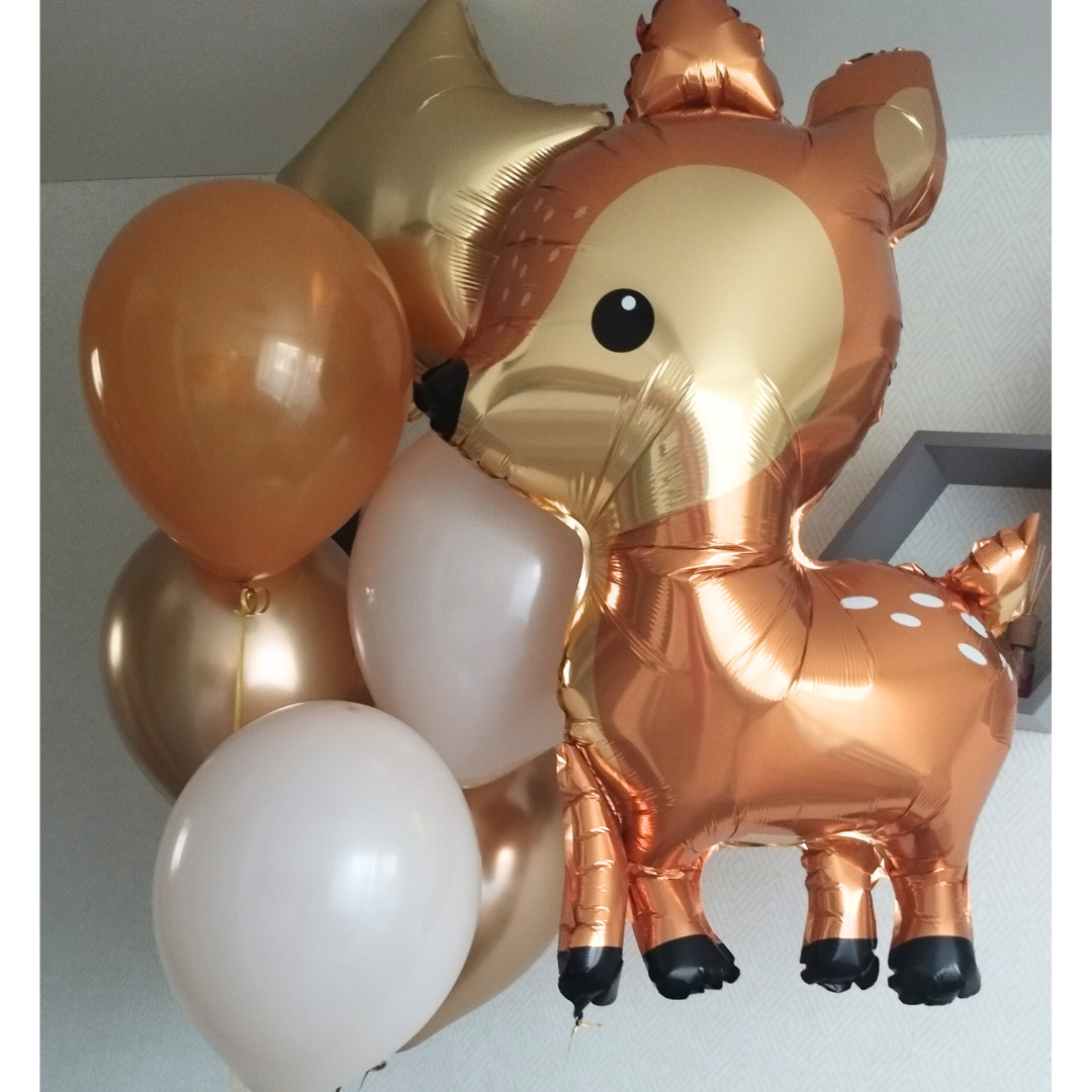 Фигура лесной олень - 1 шт Шары: -звезда золото сатин 45 см 1 шт -золото хром 2 шт -коричневый пастель 1 шт -белый песок 3 шт Количество, цвета и варианты шаров в составе сета вы можете менять на ваш вкус. Готовые сеты представлены для примера. Фольгированные шары летают от 3х дней и более. Латексные шары обработаны hi-float (полёт от 2х дней и более). Цветопередача может отличаться на несколько тонов в зависимости от вашего монитора.