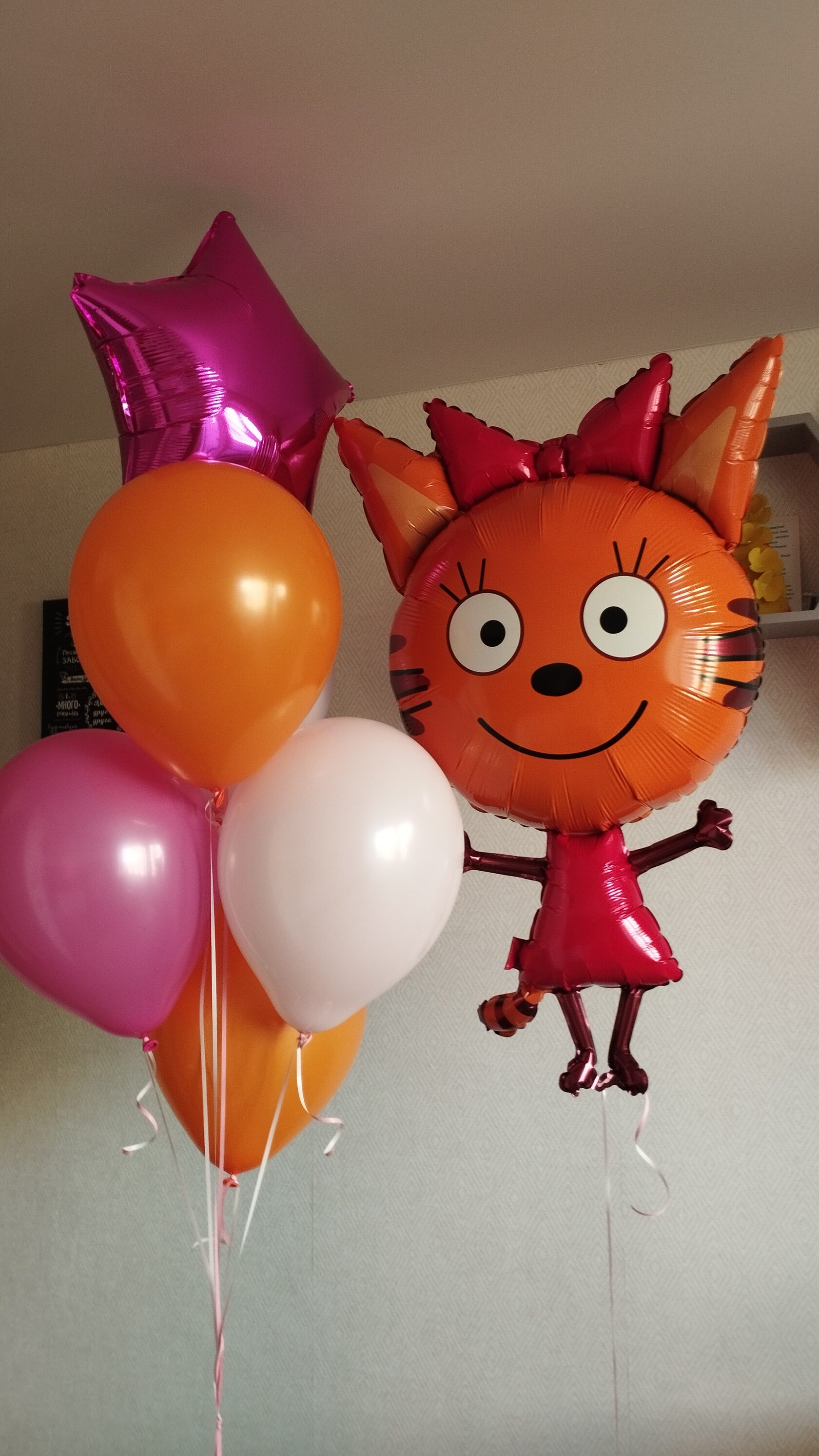 Фигура карамельки Шары: -звезда 1 шт - оранжевый пастель 2 шт - нежно-розовый пастель 1 шт -малиновый пастель 1 шт Количество, цвета и варианты шаров в составе сета вы можете менять на ваш вкус. Готовые сеты представлены для примера. Фольгированные шары летают от 3х дней и более. Латексные шары обработаны hi-float (полёт от 2х дней и более). Цветопередача может отличаться на несколько тонов в зависимости от вашего монитора.