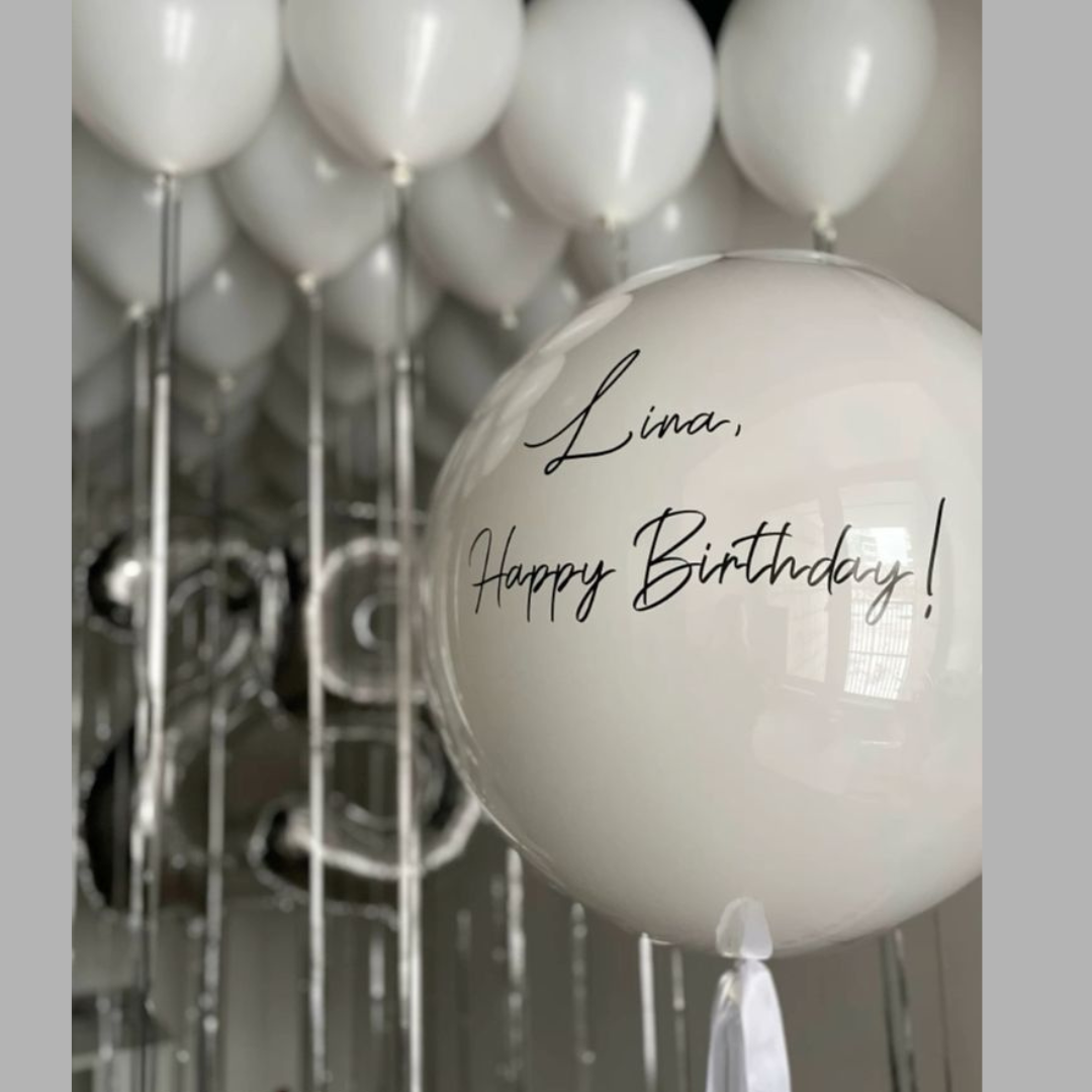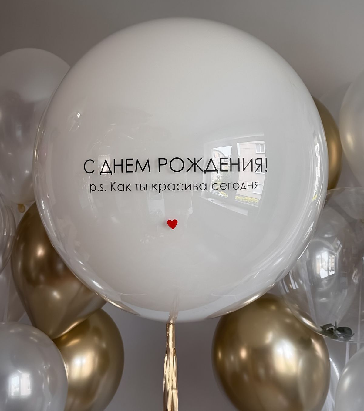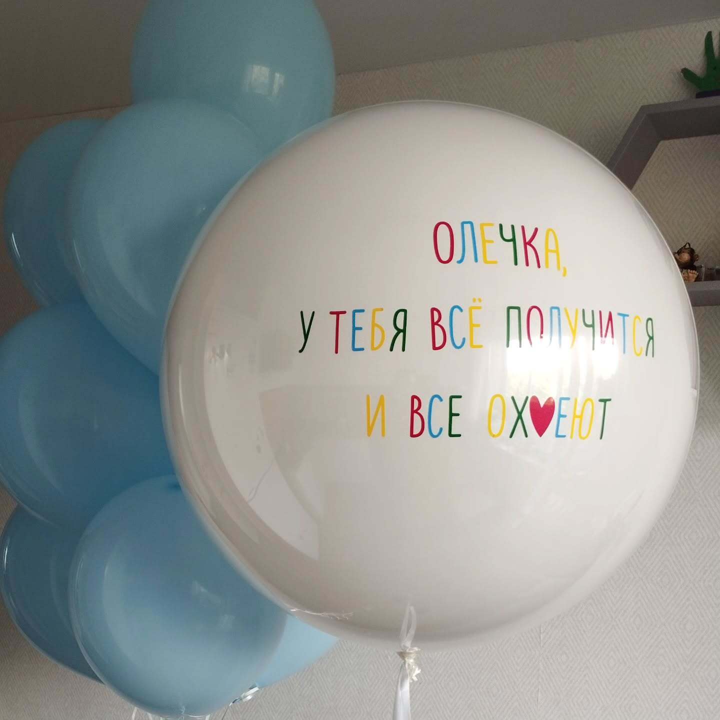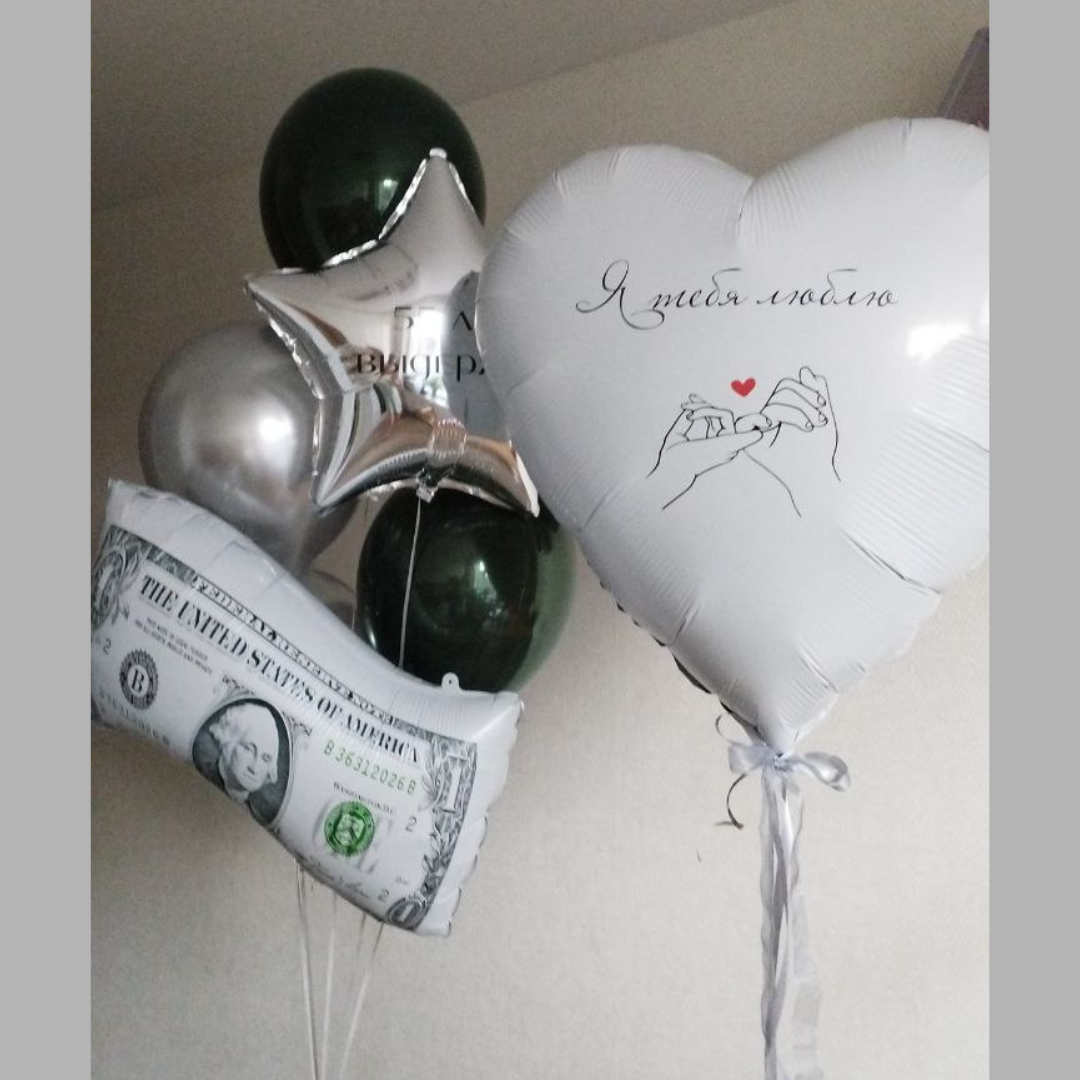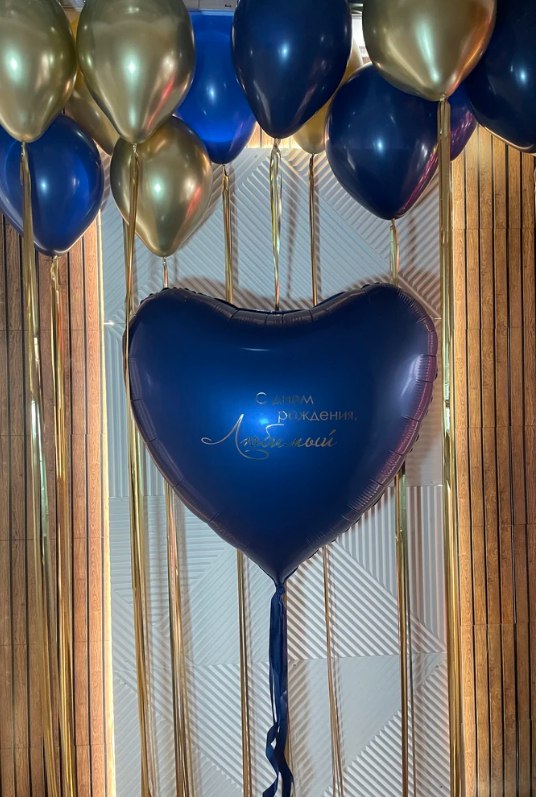 Большой сердце ( 90см) с индивидуальной надписью и шары под потолок