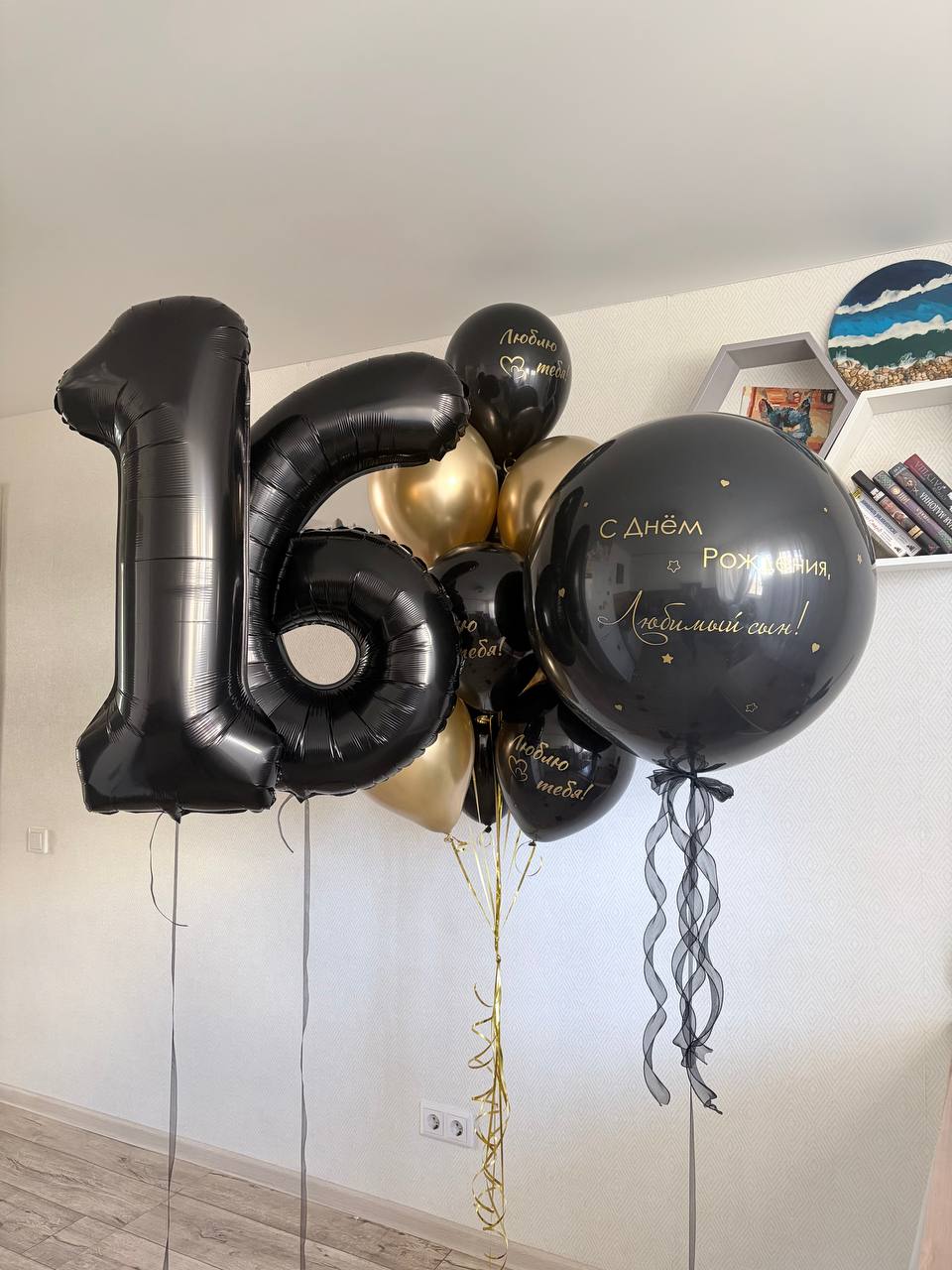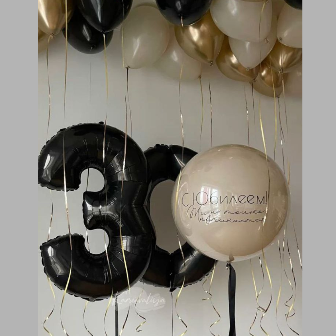 Шар 60 см с надписью, две цифры, 10 шаров ( 5 золото хром, 5 черный с индивидуальной надписью)
