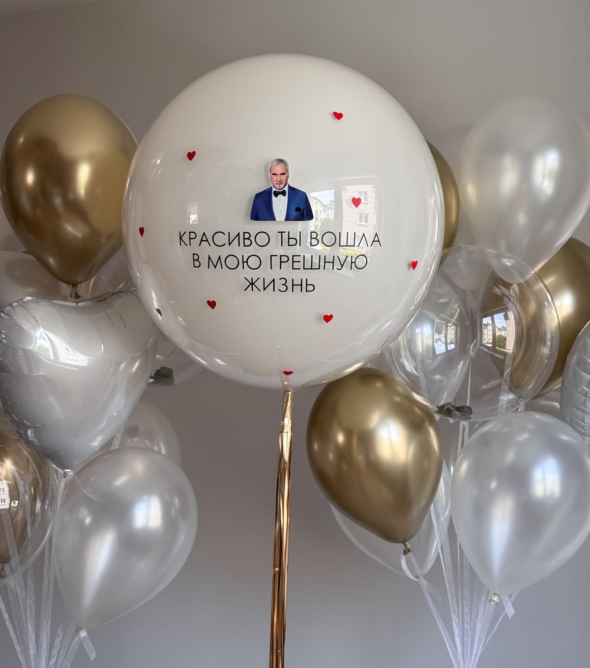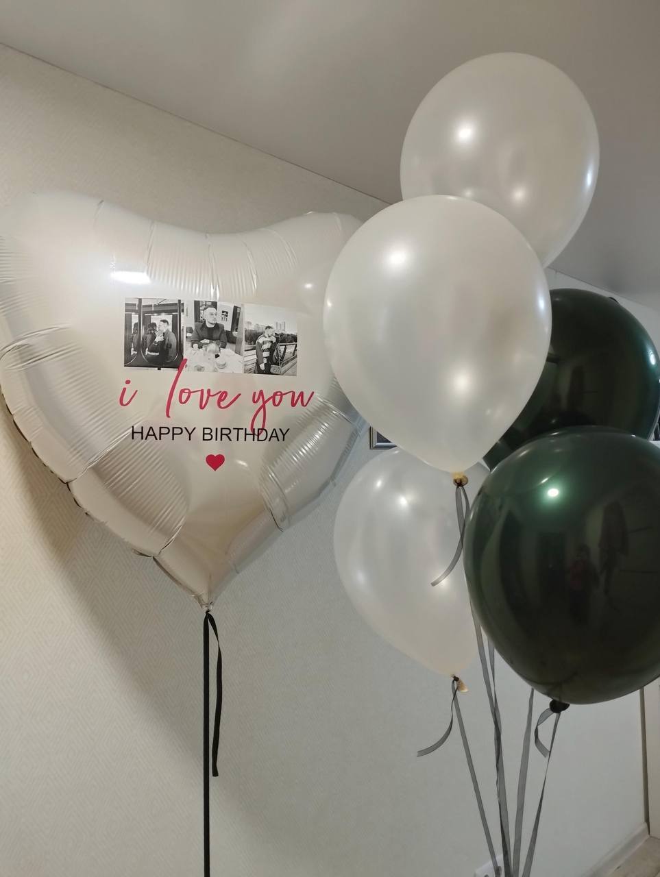 сердце 90 см с фото и надписью, связка 5 шаров