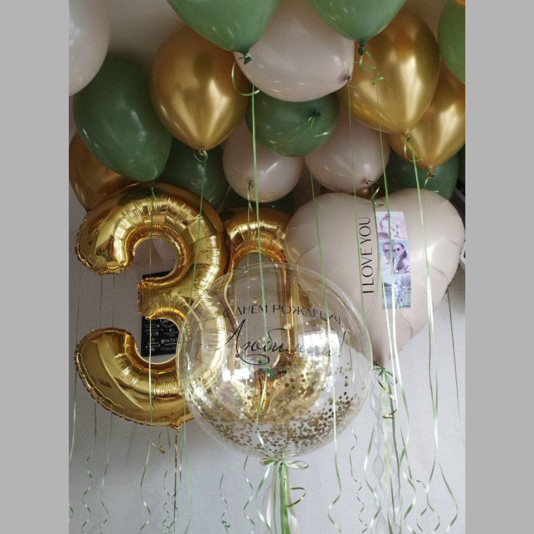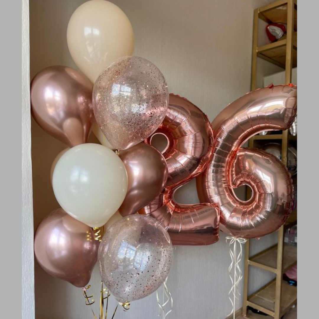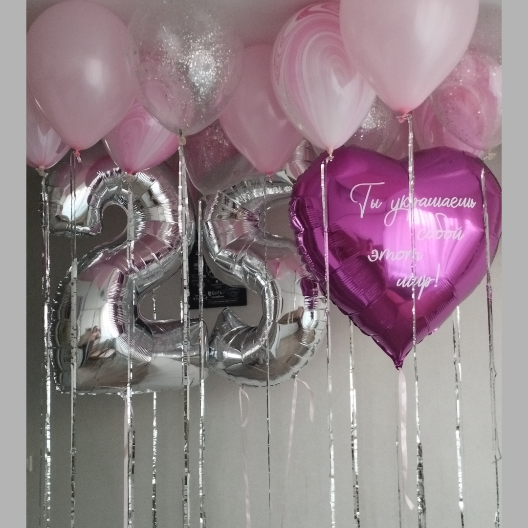 Две цифры, связка 6 латексных шаров и фольгированное сердце с индивидуальной надписью