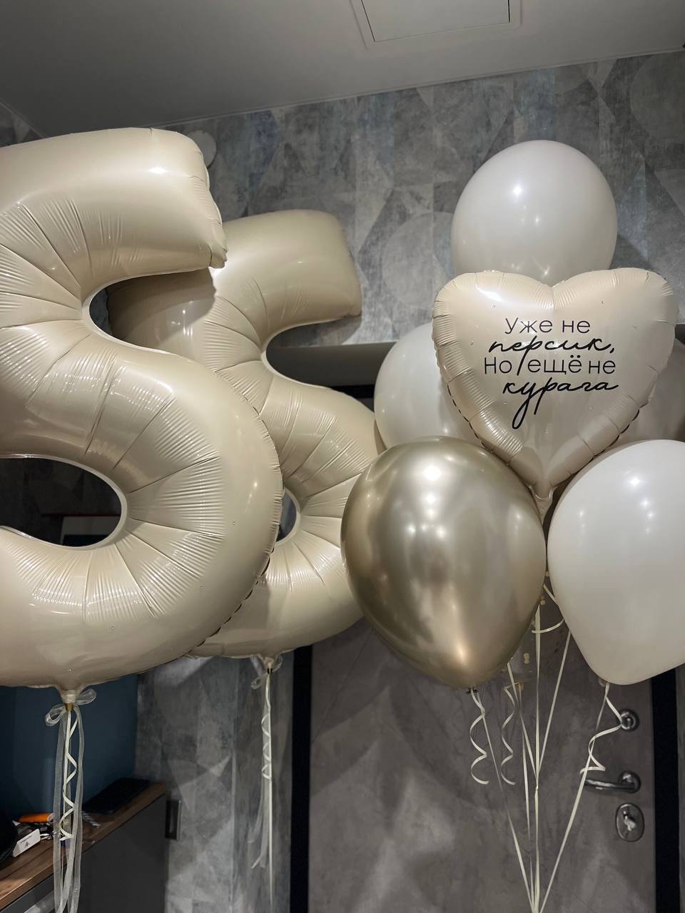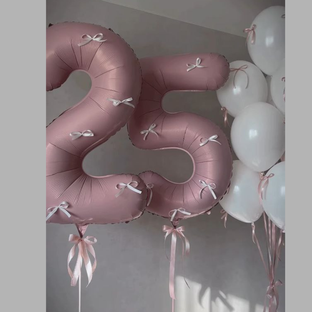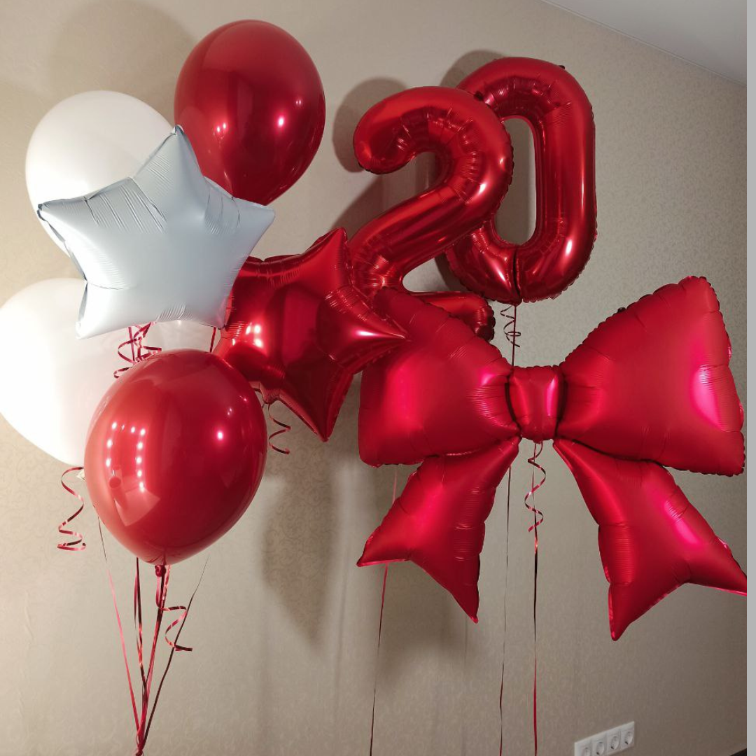 Две цифры, связка 6 латексных шаров и фольгированное сердце с индивидуальной надписью