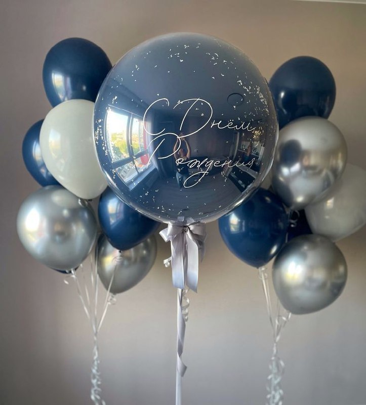 "Зеркальный" шар с индивидуальной надписью и конфетти, две связки по 7 шаров