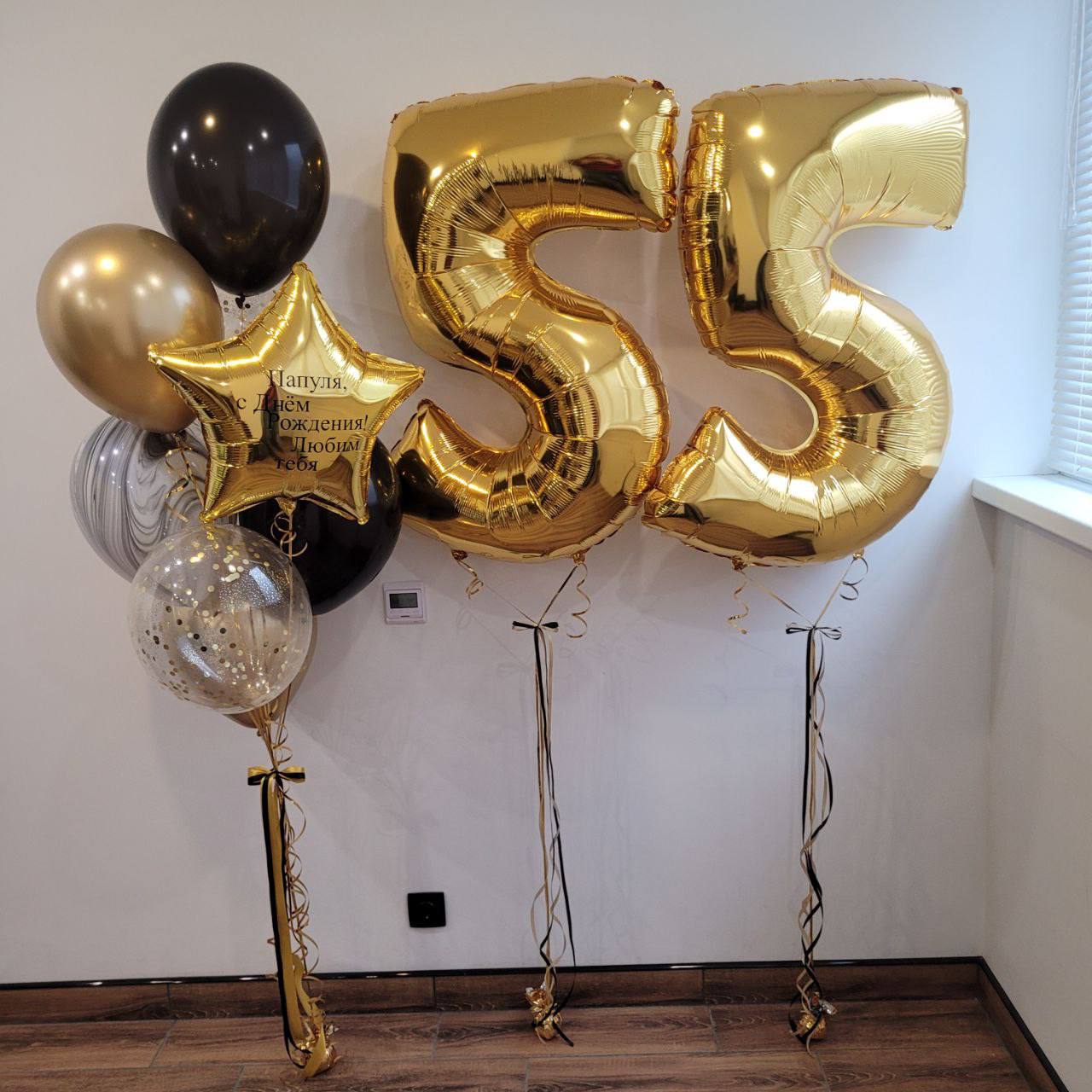 Две цифры, связка 7 латексных шаров и фольгированная звезда с надписью