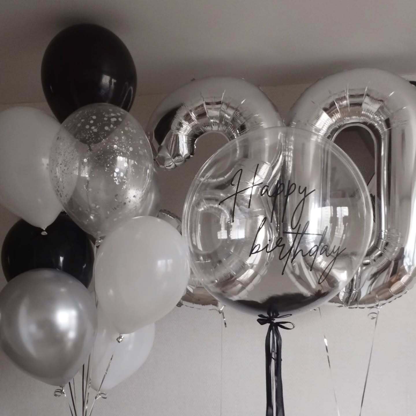 Шар с пенопластом 60 см, две цифры, 11 шаров под потолок с бантиком у основания