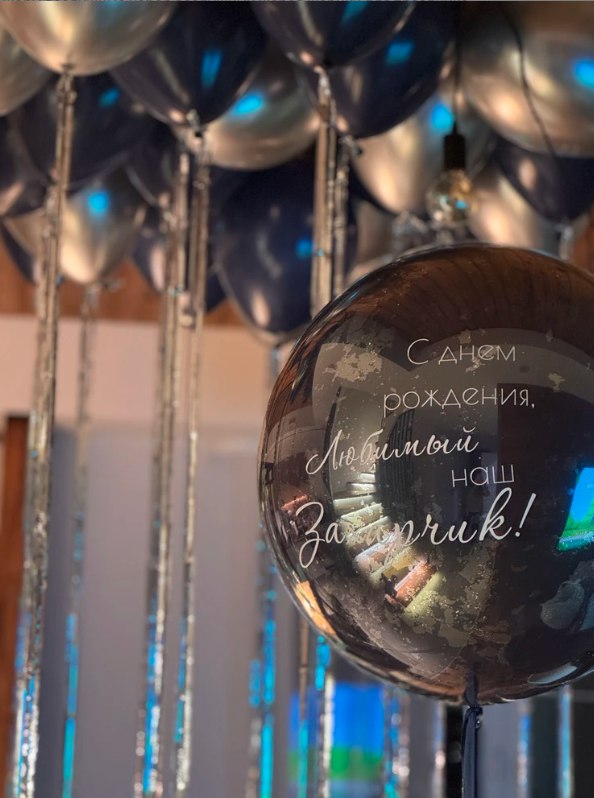 "Зеркальный" шар с индивидуальной надписью и конфетти, шары под потолок с дождиком